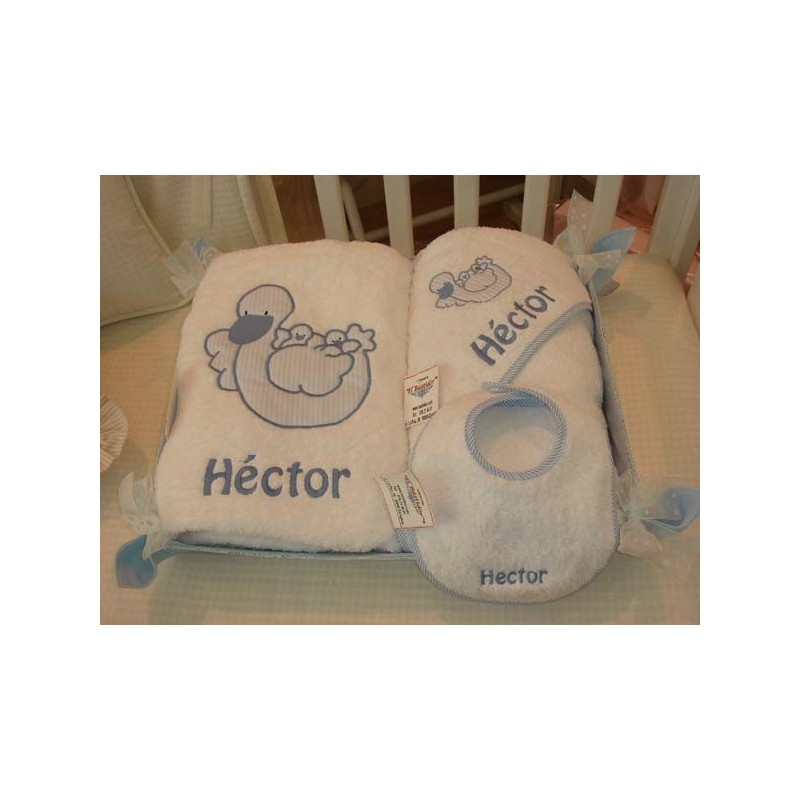 Capa de baño 90 x 90 cm.bordada con la Mamá Pata y el nombre.