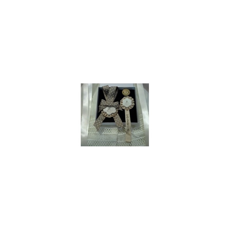 Conjunto medalla de S. LORENZO Y Chupetero bordado , bordado con el nombre del bebé