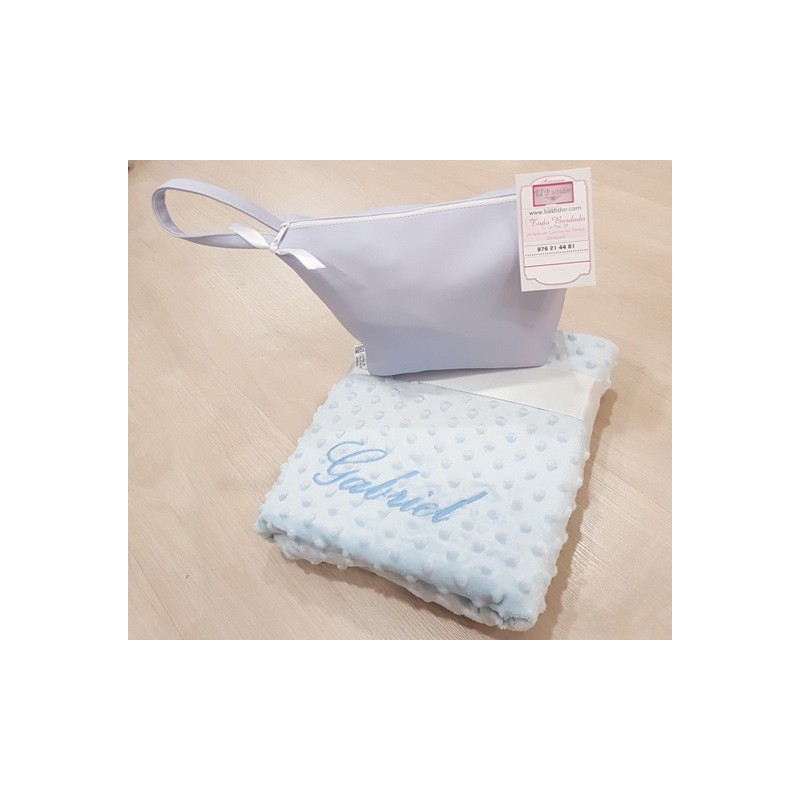 La mantita auxiliar de todo tiempo y el neceser para llevar unos pañales, la cremita, toallitas húmedas, etc ., en el bolso del carrito .