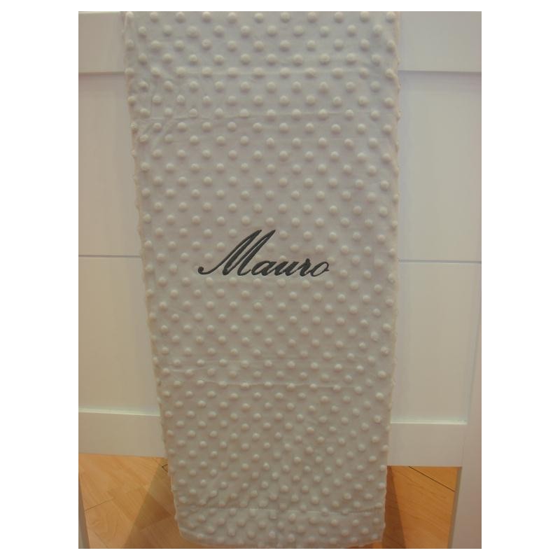 Manta de cuna bordada con el nombre.