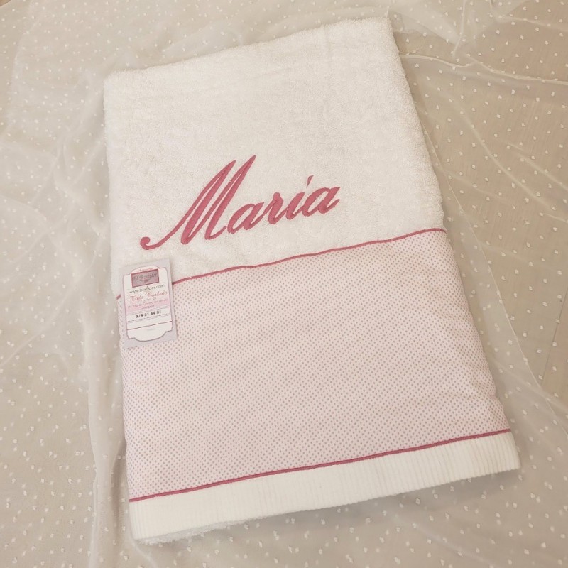 Color del bordado y de la tela de piqué , en rosa empolvado.